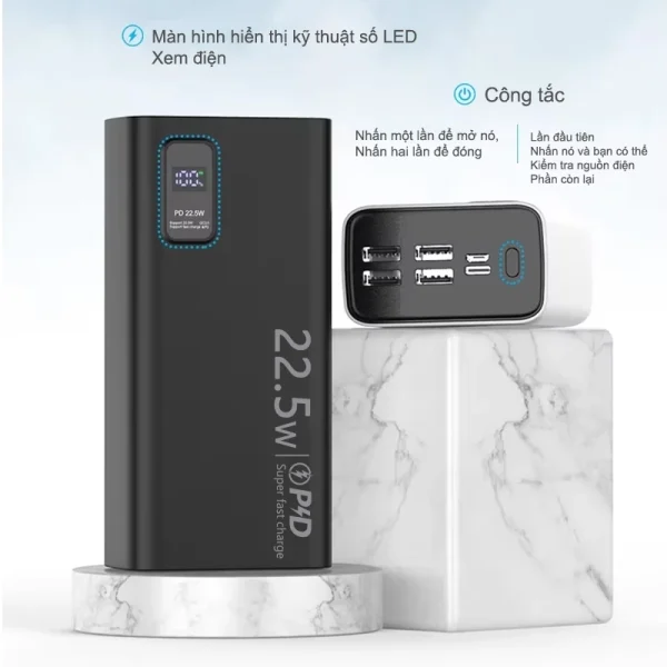 Dosen Sạc dự phòng pd22.5w 10000mah 30000mah 50000mah pin dự phòng màn hình led tích hợp tích hợp