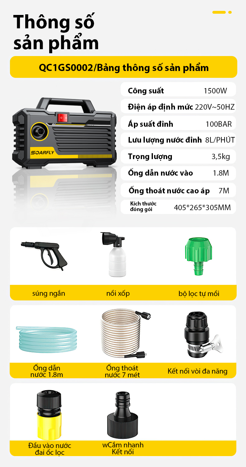SOARFLY 4800W – Lõi đồng 100% – Máy rửa xe mini – Máy rửa xe mini Máy rửa xe cao áp Máy xịt rửa gia đình tặng bình bọt tuyết